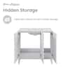 Freestanding installation for easy plumbing setup. Scratch-resistant ceramic sink top ensures durability. Soft closing doors and drawer offer ample storage space