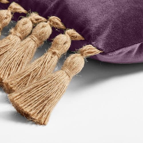 Crafted exclusively by us for One Kings Lane, this pillow adds texture to sofas or chairs with its velvet fabric and knife edges. Two edges are adorned with tassels for a playful touch. Includes an insert and features a zipper closure.