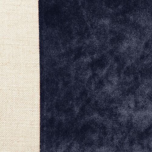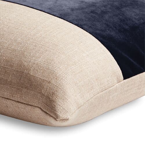 Crafted exclusively for One Kings Lane, this pillow serves as a classic accent for sofas, beds, or chairs. Made from natural linen-blend fabric, it features a deep blue velvet stripe in the center and knife-edge detailing. The solid back complements any décor. A convenient zipper closure secures the included insert.