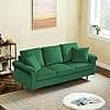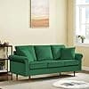 Velvet Sofa Couch with 2 Pillows, Modern 3 Seater Sofa With Wood Legs for Living Room and Bedroom .