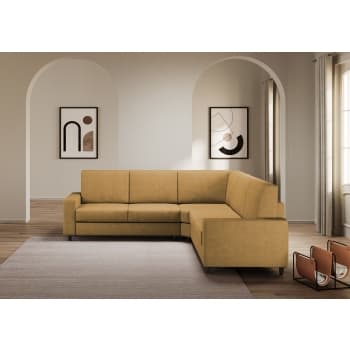 Le canapé d'angle 5 places Sakar est le meuble que vous recherchiez pour votre salon. Ce canapé allie confort, design, espace et fonctionnalité en un seul produit. L'assise est douce et confortable grâce à la mousse de haute qualité. Le style est moderne et minimaliste, avec des lignes épurées et des couleurs neutres qui s'adaptent à tout type d'environnement. Le canapé d'angle Sakar est parfait pour se détendre et recevoir des invités. Profitez de l'offre et achetez le canapé d'angle 5 places Sakar, le canapé spacieux et élégant pour votre salon. Housse entièrement déhoussable, assise en contact avec le dossier qui assure un confort unique. Hauteur d'assise depuis le sol : 45cm. Hauteur des pieds en bois : 8cm. Détails du tissu : 100% polyester, déperlant, grammage environ 320g/m2. Instructions de lavage : max 30°, repassable à basse température, nettoyage à sec, pas de sèche-linge, ne pas blanchir. Les taches causées par les liquides peuvent être simplement éliminées avec un chiffon humide. Détails techniques de l'assise : polyuréthane expansé densité : 24,6 Kg/m3, capacité portante 40% 3,8 KPa Din 53577, contrainte de pression 40% 150N Din 53576/B, déformation permanente 50% 3% Din 53572. Détails techniques du dossier : expansé densité du polyuréthane : 14,7 Kg/m3, résistance à la compression 40% 1,5 KPa UNI EN ISO 3386-1, rendement élastique : 38 UNI EN ISO 8307.