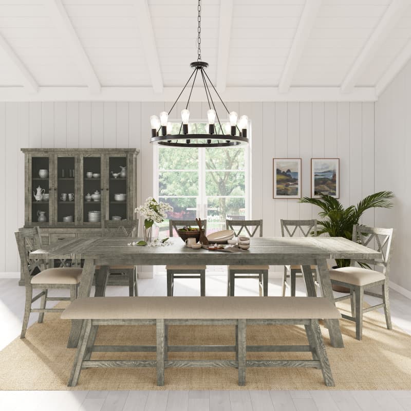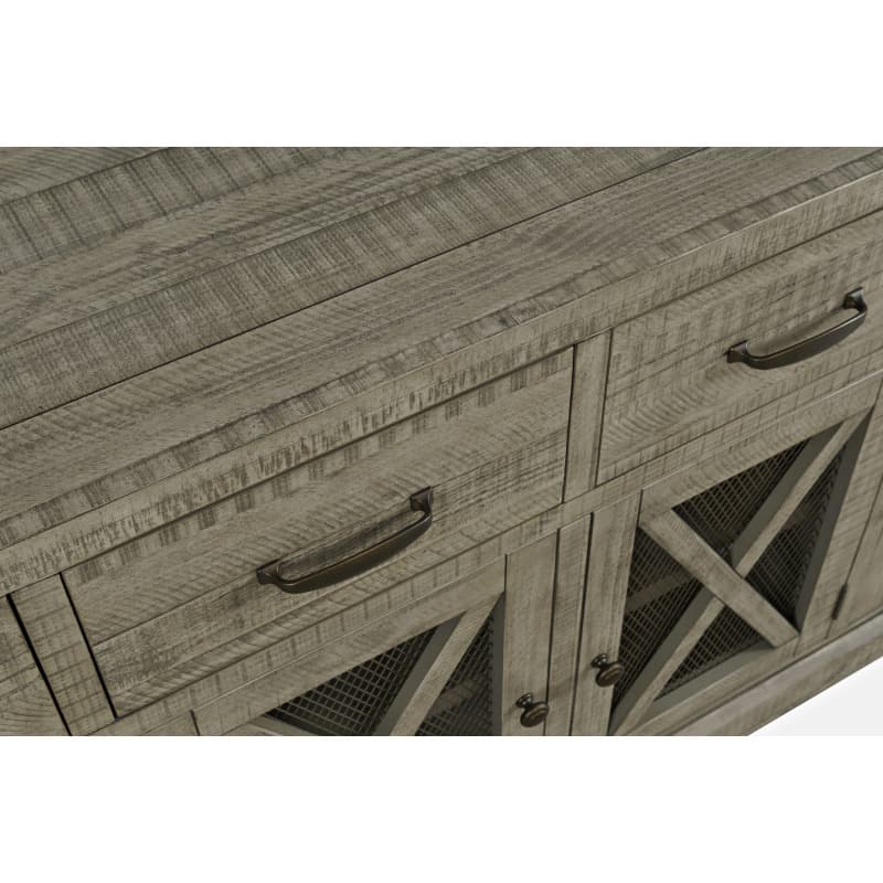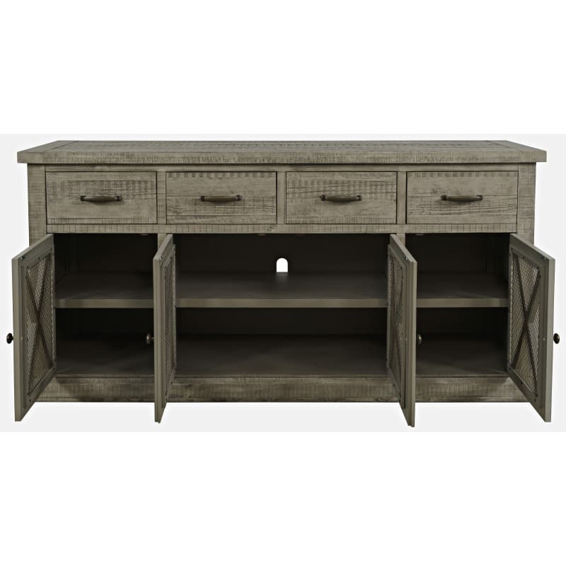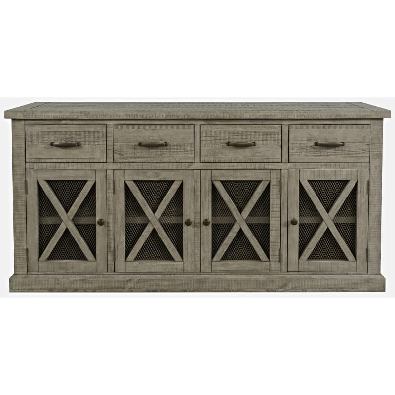 The Telluride Collection is the epitome of rustic style with its mixed media durable construction. The natural pine, with its subtle distressing, make this a bold statement piece on its own or a perfect added accent to your interior. This sideboard features four drawers and four doors with black wire grill detail and fixed interior shelves.
