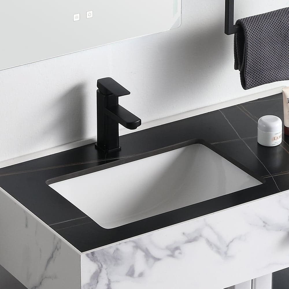 Black Floating Bathroom Vanity Faux Marble & Sintered Stone Top Ceramics Undermount Sink