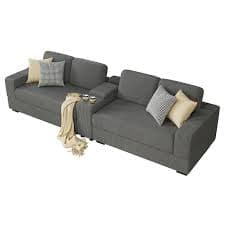 Latitude Run® 124 Inch Sectional Couch, Oversized Couch with Storage Console, Deep Seat Sofa with Charging Socket, Grey Comfy Couch for Living Room | Wayfair