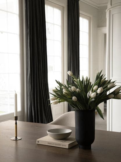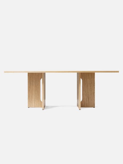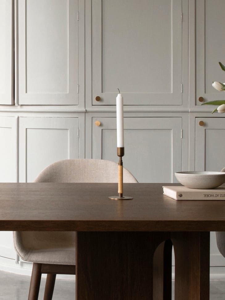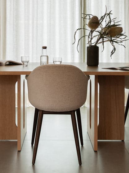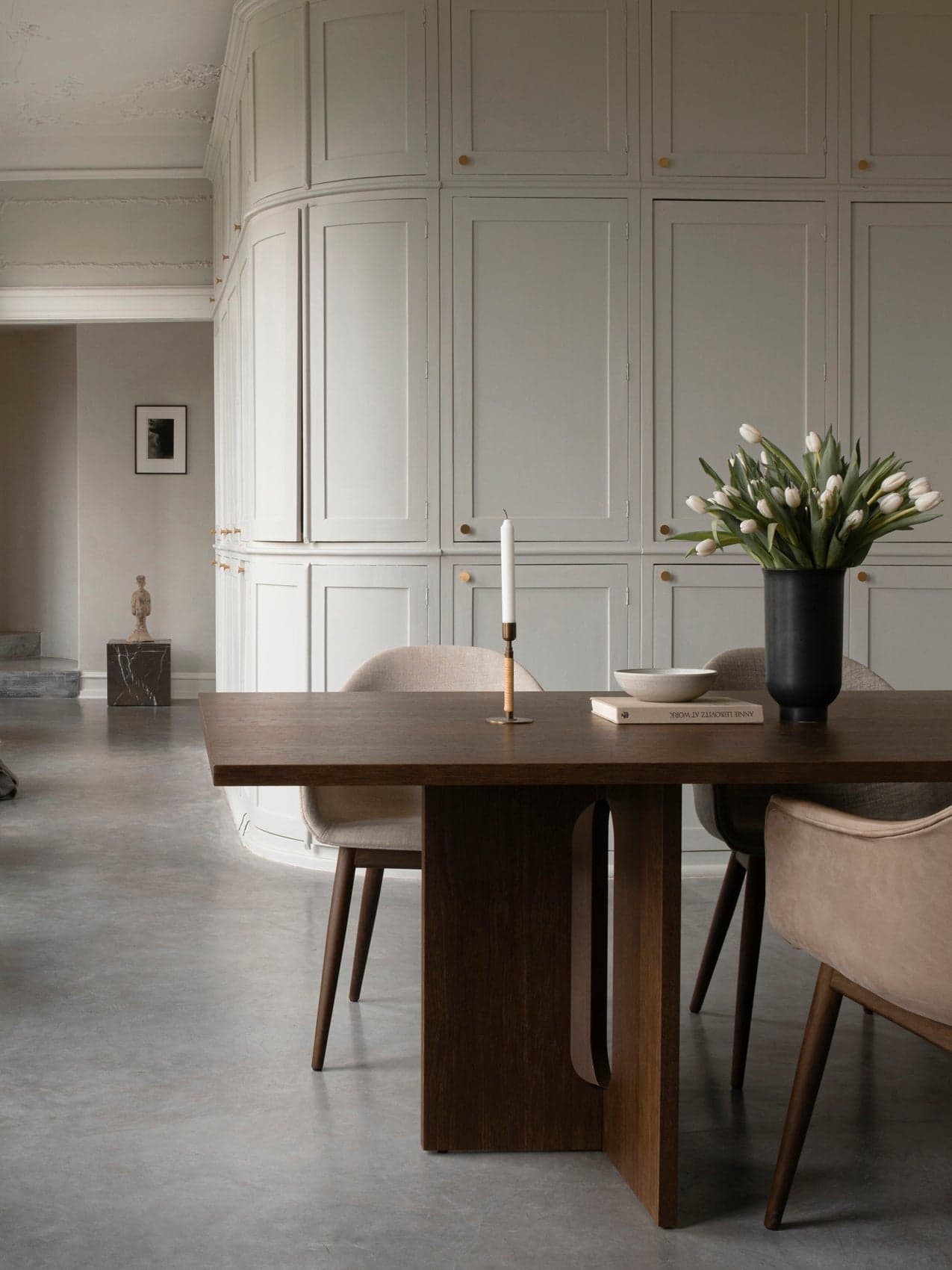 Audo’s Androgyne Collection is distinguished by its playful, yet elegant silhouette and considered combination of natural materials. The invention of the Copenhagen-based Norwegian architect and designer Danielle Siggerud, its blend of the masculine and feminine – true androgyny – is what lends the collection its name. Like a magnificent monument, the new Androgyne Dining Table pairs oak and stone to striking effect. The bold and confident take on a dining table amplifies the silhouette of the collection’s popular side table to grander proportions thanks to an elegant oak base – available in natural or dark stained – and a table top in corresponding wood or kunis breccia, an artistic blend of stones in warm tones that create subtle texture and add a new dimension to the design. A table not for the faint of heart, it makes a characterful accent in any space – from a domestic dining room to a modern restaurant or office gathering point – and serves multiple functions to bring a timeless quality to the design. "The Androgyne Collection has always been about honouring perfectly executed joinery and celebrating natural materials. The use of rich, warm oak makes it easy to pair the dining table with any interior style, and the wood will age gracefully over time. I envisage the table in a home space, as a natural gathering point that allows people to come together in different ways." – Danielle Siggerud