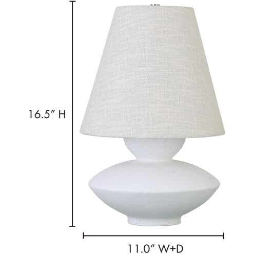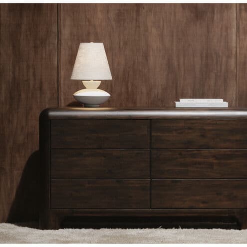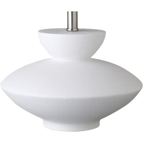 The Dell table lamp features an abstract, organic base that draws inspiration from the timeless beauty of ancient forms paired with a classic shade. A testament to the power of harmonizing time-honored aesthetics with modern sensibilities, its intriguing base exudes a sense of history and depth, while the pearl white color and classic shade offer a touch of contemporary sophistication.