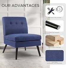 Amazon.com: LSSBOUGHT Armless Accent Living Room Chairs, Modern Side Chair for Bedroom Upholstered Single Sofa Chair with Wood Legs for Reading Room, Comfy Fabric Vanity Chair for Makeup Room (Blue) : Home & Kitchen