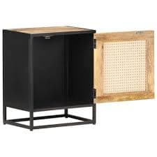 vidaXL Bedside Cabinet 15.7"x11.8"x19.7" Rough Mango Wood and Natural Cane | vidaXL.com