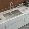 Logmey 28 in. Undermount Double Bowl 16-Gauge Stainless Steel Kitchen Sink with Low Divide and Bottom Grid LM281910UX-264 - The Home Depot