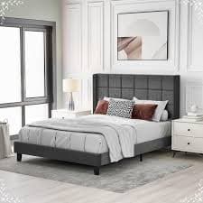 Daesar Upholstered Bed 140 x 200 cm Low Headboard, Wooden Bed Frame, Youth Bed with Slatted Frame, Double Bed, Modern Grey Linen : Amazon.de: Home & Kitchen