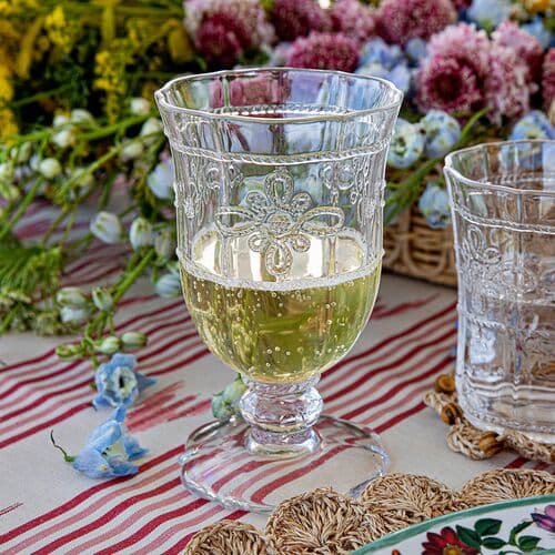 Featuring a quatrefoil pattern, this goblet exudes Old World charm, and its shatterproof acrylic material makes it perfect for everyday use, not just special occasions.