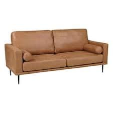 Simpli Home Livingston Mid-Century Modern 76 in. Wide Sofa in Sienna Genuine Leather AXCSOFLIV76-SIE - The Home Depot