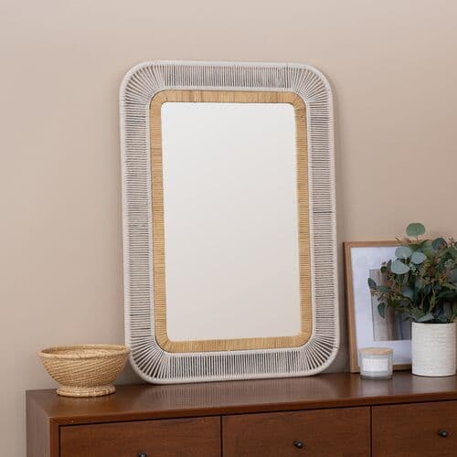 Harvey Woven Wall Mirror - Natural/White | Dressing Mirror, Vanity Mirror - Brown - Functional, Aesthetic