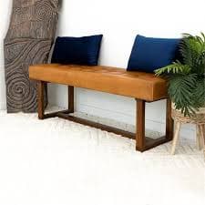Pemberly Row Mid-Century Button-Tufted Genuine Leather Upholstered Bench in Tan - Walmart Business Supplies