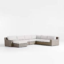 Abaco Resin Wicker 5-Piece Left-Arm Chaise Outdoor Sectional Sofa with White Sand Sunbrella Cushions + Reviews | Crate & Barrel