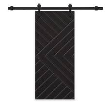 CALHOME Chevron Arrow 24 in. x 84 in. Fully Assembled Black Stained MDF Modern Sliding Barn Door with Hardware Kit SWD11-MK-72+DOOR-CNC-01-24D - The Home Depot