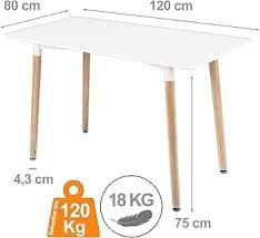 Cepewa Dining Table Modern Kitchen Table 120 x 80 x 75 cm White MDF Table Top 4-6 People Wooden Legs Height Adjustable Beech : Amazon.de: Home & Kitchen