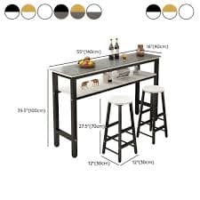 Modern 3-Piece Bar Set with Stone Tabletop, Metal Base and White Metal Seating with Storage - Table & Chair(s) 3 Piece Set Gloss White 55.1"L x 15.7"W x 39.4"H