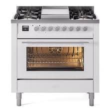UP36FWMPWH by Ilve - ILVE UP36FWMPWH Professional Plus II 36 inch Dual Fuel Range (Natural Gas, Triple Glass Door, White) | The Appliance Plug
