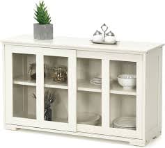 GIANTEX Credenza e Buffet Multiuso, a 3 Ripiani, Mensola Regolabile, 2 Ante Scorrevoli Trasparenti, Mobiletto Legno per Cucina, Soggiorno, Sala da Pranzo, 106,5x33x62,5 cm,Bianco Crema(Beige) : Amazon.it: Casa e cucina