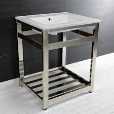 Kingston Brass VWP2522W8A6 Quadras 25-Inch Ceramic Console Sink (8-Inch, 3-Hole), White/Polished Nickel
