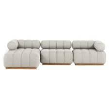 Rhey Grey Upholstered Teak Tufted Outdoor Sectional with Ottoman - 146"Wx73"D Over 100" W | Kathy Kuo Home