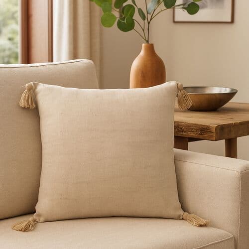 Enhance your bed with a soft pillow crafted from luxurious linen with a neutral color and finished with fringed tassels. It comes with a feather-and-down insert for added comfort.
