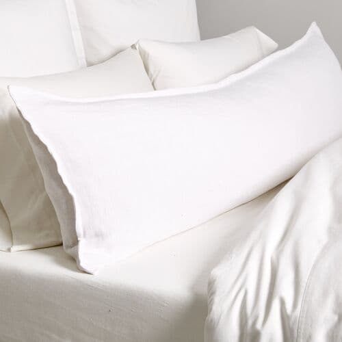 Made from soft white linen with a feather and down insert, this body pillow enriches the bed with added texture and depth.
