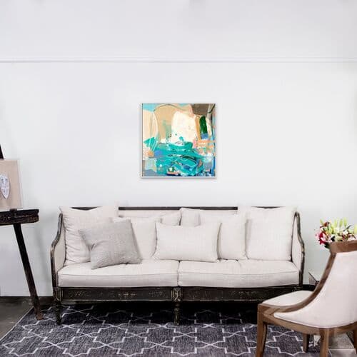 Originally seen at One Kings Lane, this canvas features an abstract piece by Michelle Armas showcasing bold brushstrokes and a sense of depth. It is framed in pine and ready to hang. Michelle Armas creates large and small abstractions as well as portraits in her Decatur, Georgia studio. She studied graphic design at Portfolio Center in Atlanta.