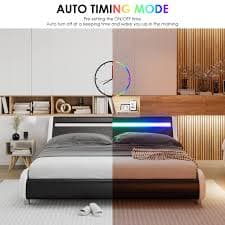 Keyluv Upholstered Full LED Bed Frame with Headboard, Modern Low Profile Platform Bed with Strong Slats Support, Faux Leather Wave-Like Bed Frame, Easy Assembly, No Box Spring Needed, Blackwhite : Amazon.co.uk: Home & Kitchen