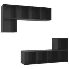 4 Piece TV Cabinet Set High Gloss Black Chipboard