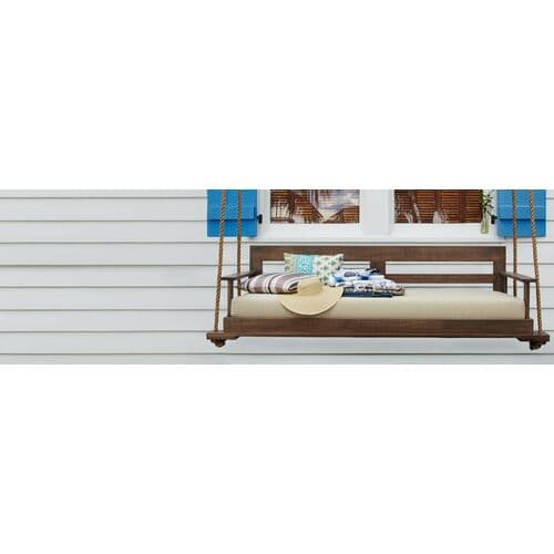 Enjoy relaxing moments with a book or coffee on this cozy porch swing. Equipped with a durable Sunbrella fabric cushion over a five-inch-thick marine-grade foam mattress, it is an ideal outdoor retreat. Please note that hardware is not included. Expertly handcrafted in the USA.