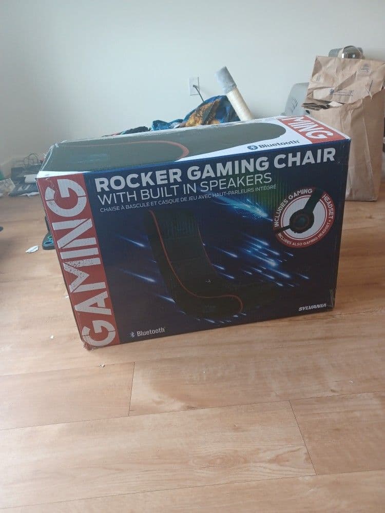 Got this a year ago and took it out once. It's not really my thing, but it's in great condition! Includes: -Headset -built-in Bluetooth speakers -Wiring -Comfy looking Black rocking chair w/red accents (obviously)