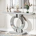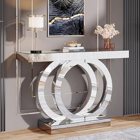 A sofa table is an accent piece that looks good anywhere. This silver sofa table matches well with a modern, contemporary styled sofa finished in black or light grey. It also looks great as a standalone piece topped by a silver-accented lamp or decorative vase. Straight lines offer a fresh, modern appearance. Sides are finished in a unique pattern that is nice contrast to solid silver finish throughout.