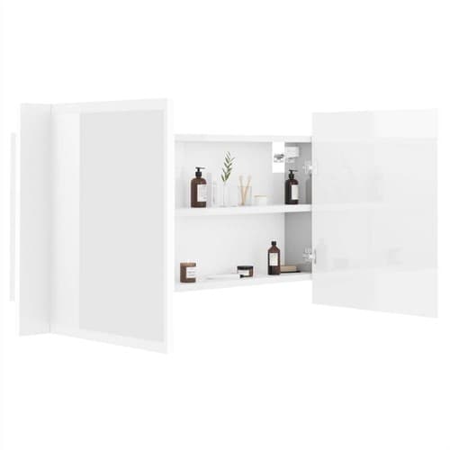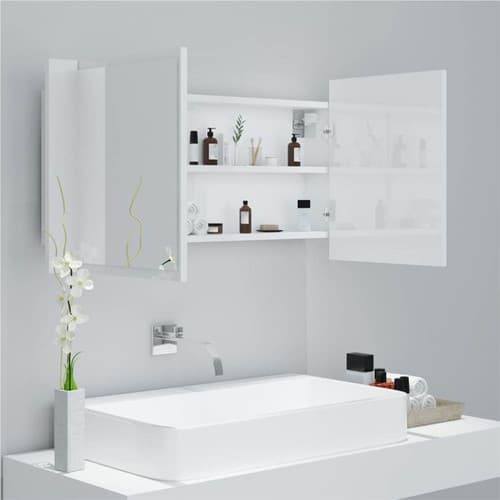 LED Bathroom Mirror Cabinet High Gloss White 90x12x45 cm