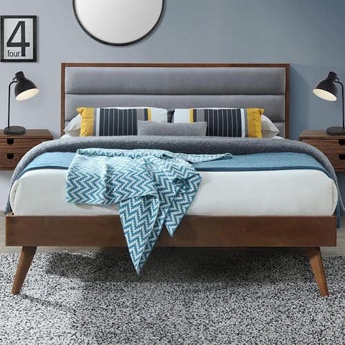 Lit Vintage 160cm Bois Et Tissu Gris Liv caractéristiques : hauteur en cm: 106, largeur en cm: 160, longueur en cm: 209, structure: bois massif, revêtement: tissu gris, pieds: bois massif, sommier: lattes en bois, surface de couchage en cm: 160 x 200, poids: 64kg, type de produit: lit, couleur: gris, à monter: oui, pied matière: bois, pièce: chambre, garantie: 2 ans.