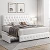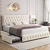 Buy Keyluv Modern Upholstered Bed Frame with 4 Drawers, Button Tufted Headboard Design, Solid Wooden Slat Support, Easy Assembly, Full Size, White: Bed Frames - Amazon.com ✓ FREE DELIVERY possible on eligible purchases
