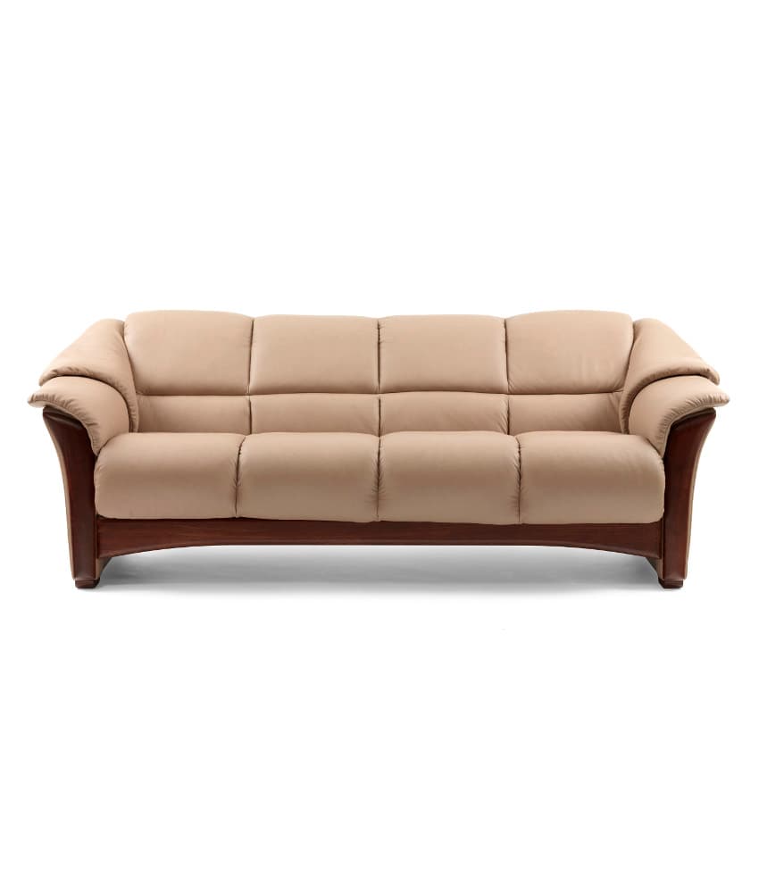 Cosmopolitan and elegant, the Stressless Oslo couch is one of our most opulent sofas. With the gently sloping contours, plush detailing and generous proportions the Oslo is a stunning example of contemporary Scandinavian design. With a fixed back and curved wood, and overlapping arm details, the Oslo is for those with a dramatic sense of style. The Oslo is available in a sofa or loveseat. The Ekornes Stressless® Oslo sofa comes with an exposed wood front.