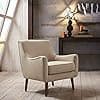 Update your living room with our mid-century accent chair. Featuring mid-century inspired curves, this chair is upholstered in a soft sand fabric that adds a light contrast to the room decor. The frame is composed from select hardwoods and plywood and is elevated on smooth tapered wooden legs in espresso finish. Removable cushion, not reversible. Leg assembly required.