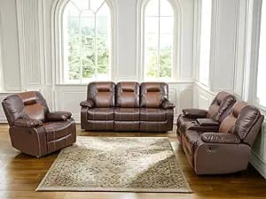 Buy Caberryne Leather Recliner Sofa Set for Living Room Furniture Set,Brown Reclining Sofa Couch Set with Drop-Down Table and Cup Holder for House/Home Theater(3Pcs Set): Living Room Sets - Amazon.com ✓ FREE DELIVERY possible on eligible purchases.