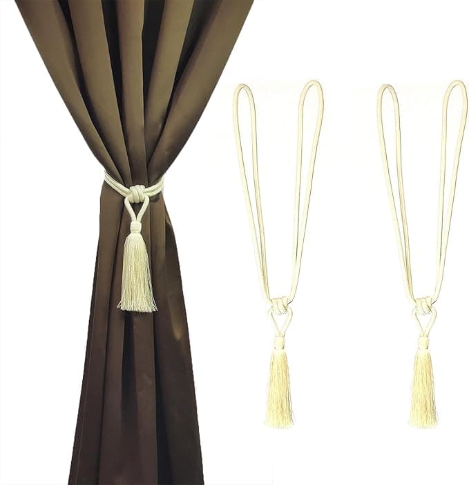 MALOINTEX 2 Pack Curtain Tiebacks Small Handmade Elegant Curtain Tiebacks with Tassel Polyester for Home Office Hotel Decoration Cream