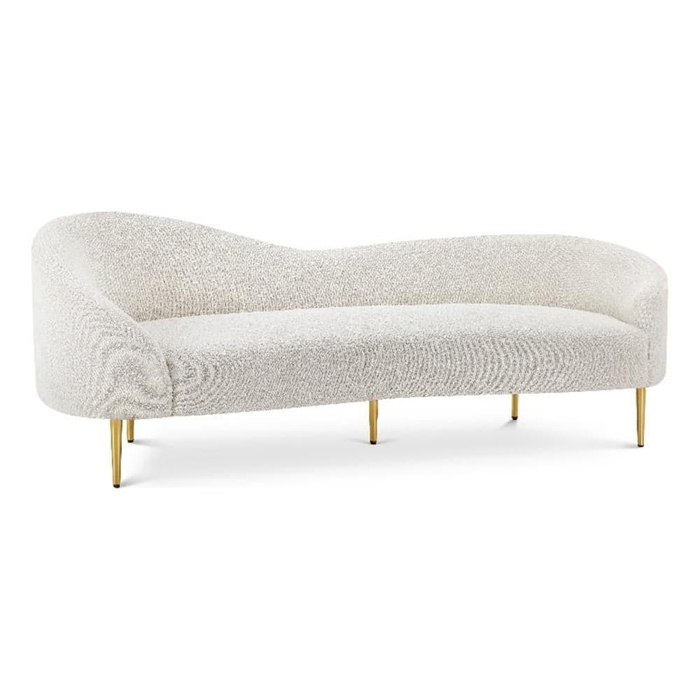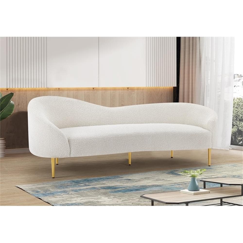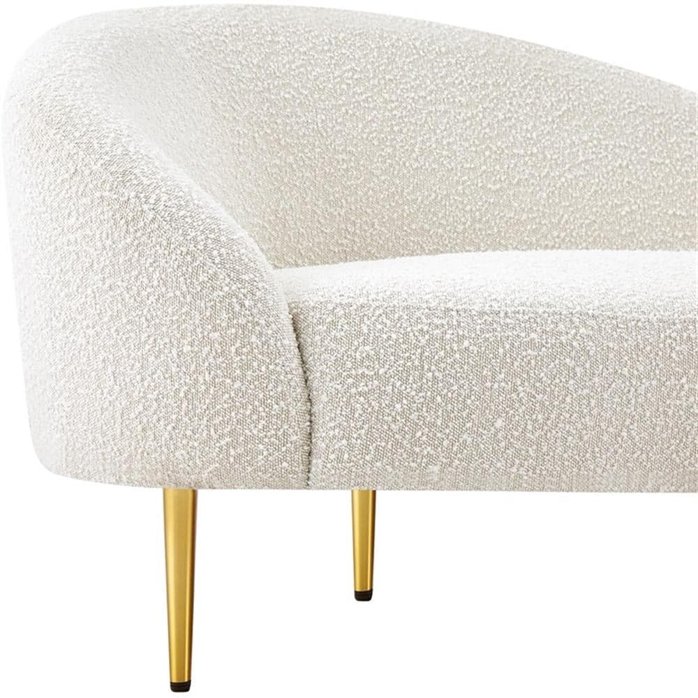 Pemberly Row Contemporary Boucle Fabric & Metal Sofa in Cream and Gold