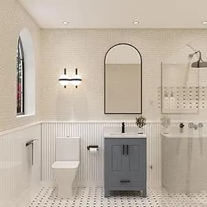 Buy Ayna Decors Rooh 24 in Charcoal Grey Bathroom Vanity Set with White Quartz Countertop | Ceramic Sink | 2 Soft Closing Doors | 1 Full Extention Soft Close Drawer | Black Hardware: Bathroom Vanities - Amazon.com ✓ FREE DELIVERY possible on eligible purchases