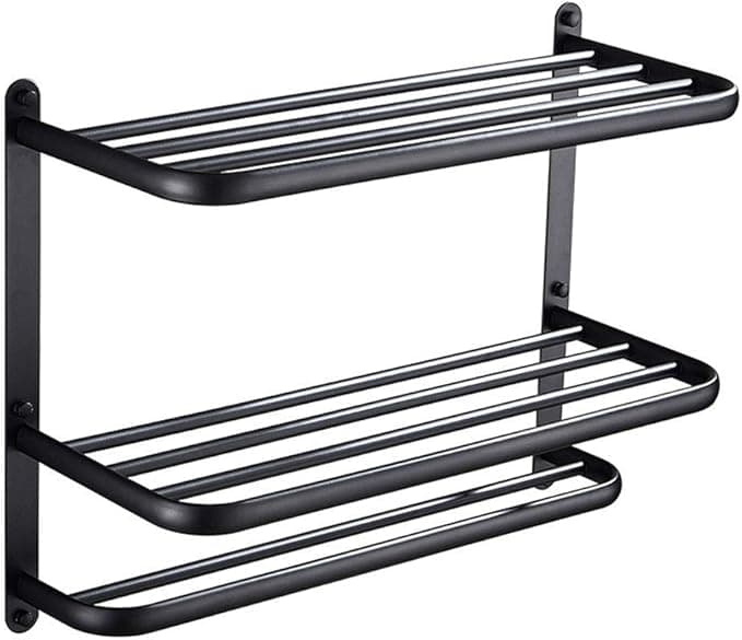 SHAUNI Estantes de baño, toallero de baño con dos barras de toalla para montaje en pared, acero inoxidable SUS 304 negro mate (tamaño : 16.9 x 4.7 x 22.8 in)