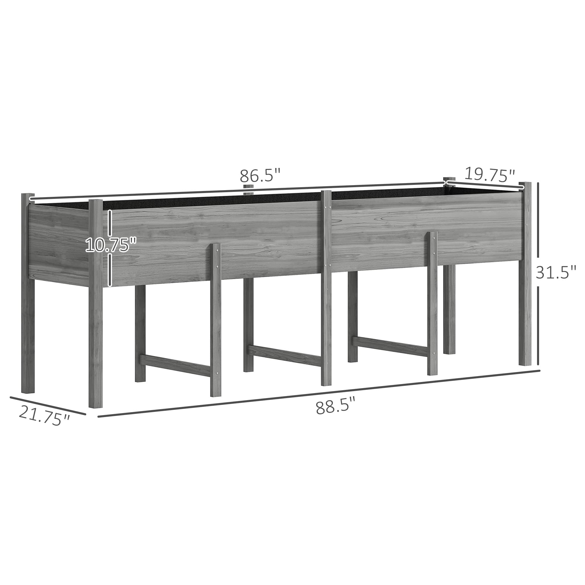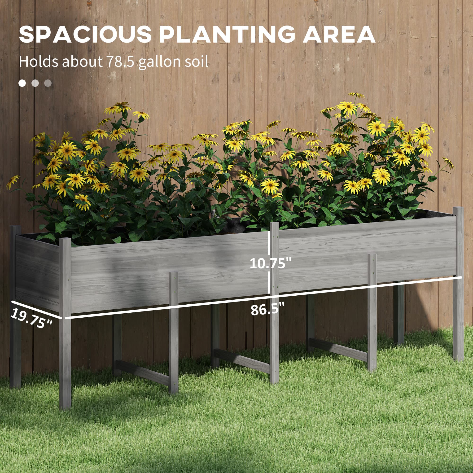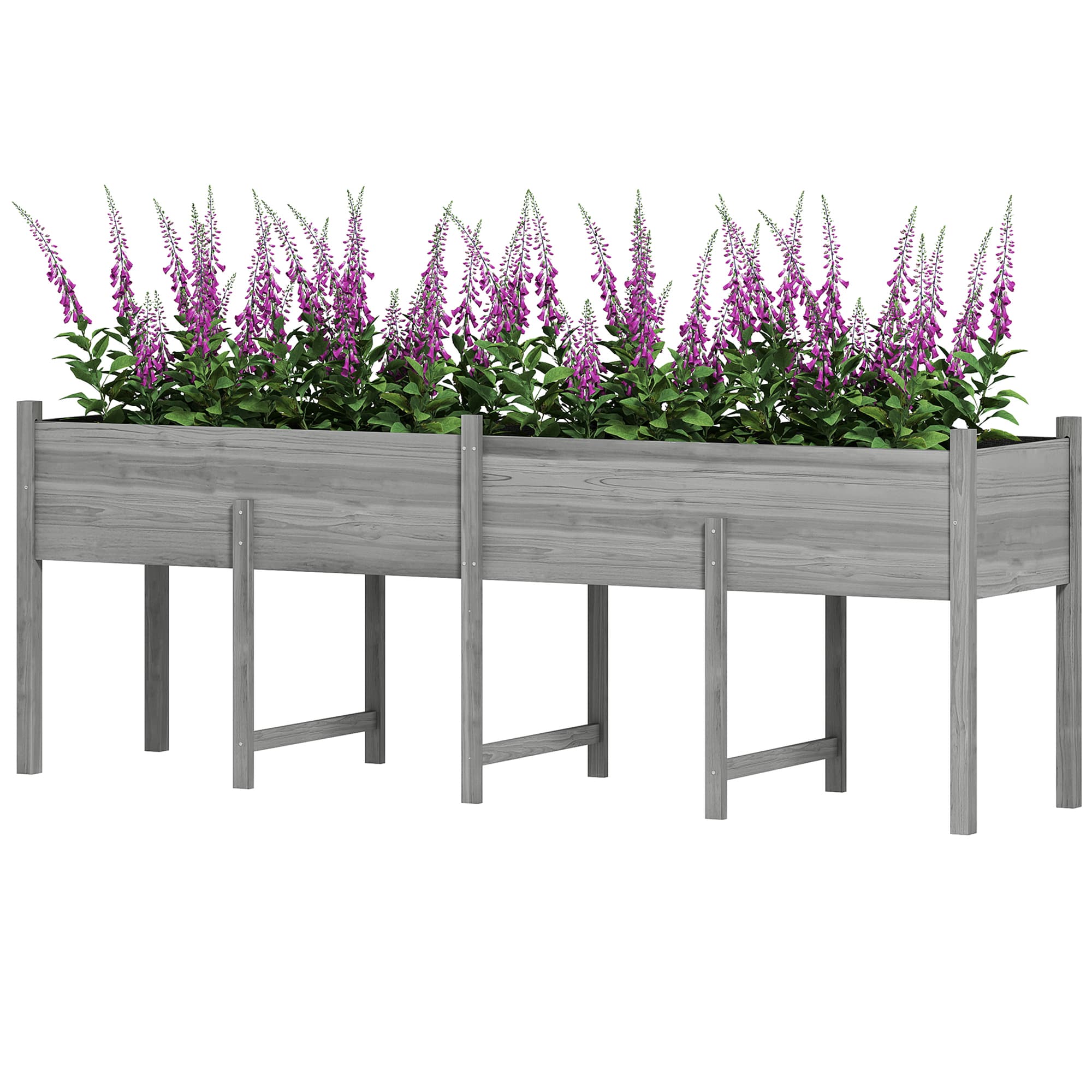 Outsunny Wooden Raised Garden Bed, Large Elevated Planter Box with Legs, Bed Liner and Drain Holes, 7.4' x 1.8' x 2.6', Gray