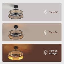 Orison 20" Boho Ceiling Fan with Lights, Rattan Fandelier Ceiling Fan and Remote Control, Farmhouse Woven Caged Ceiling Fan, 6-Speed Reversible Motor, 4 Bulbs, Timer for Bedroom, Living Room, Kitchen - Amazon.com