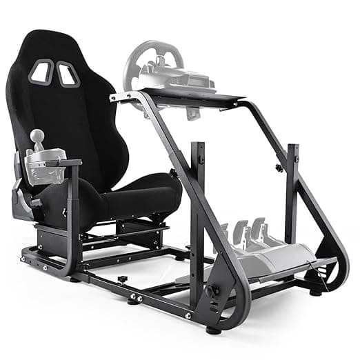 Stable Cockpit: The one-piece welded construction of this racing simulator cockpit enhances stability, the triangle structure and non-slip rubber pads can make this cockpit is not wobbly in the game. Comfortable Driving: The height of the racing wheel stand, the position of the gearshift, and the angle of the foot pedal can be adjusted according to the player's driving habits. Black Ergonomic Seat: Professional gaming seat with high density sponge padding, will not collapse. Breathable material, smooth arc design on the edge of the seat, can better experience the thrill of drag racing. Adaptable Brands: The steering wheel stand is adaptable to many brands and even direct drive motor steering wheel, such as logitech G29 G920 G PRO, truthmaster TX, t300rs. Special Note: Steering wheel, shift lever and pedals are not included.