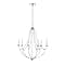 The Eisley Collection of chandeliers is a whimsical and graceful contemporary interpretation of 18th-century lighting design. Modern gold, powder coat black, or polished nickel finishes make these fixtures available as 6-light and 8-light options with optional white linen shades. The interlocking hook design of the curved arms adds extra dimension to the overall design.