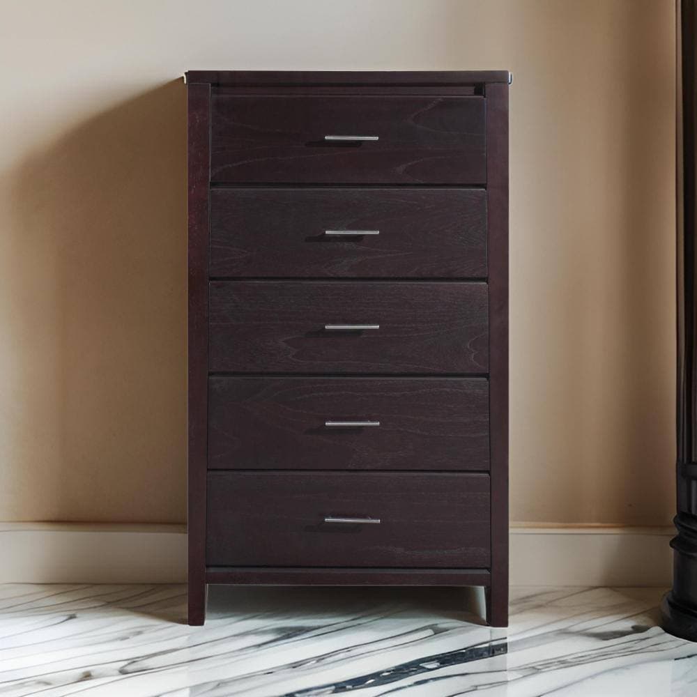 Brown and Chrome 5-Drawers 32 in. Dresser Without Mirror