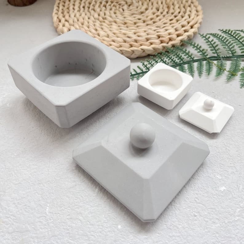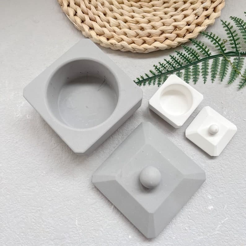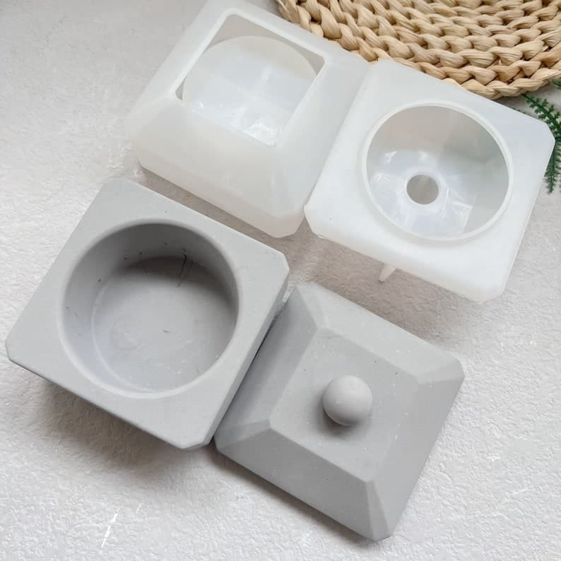 Large/ cute square storage jar with lid candle jar silicone mold plaster mold resin mold beauty mold